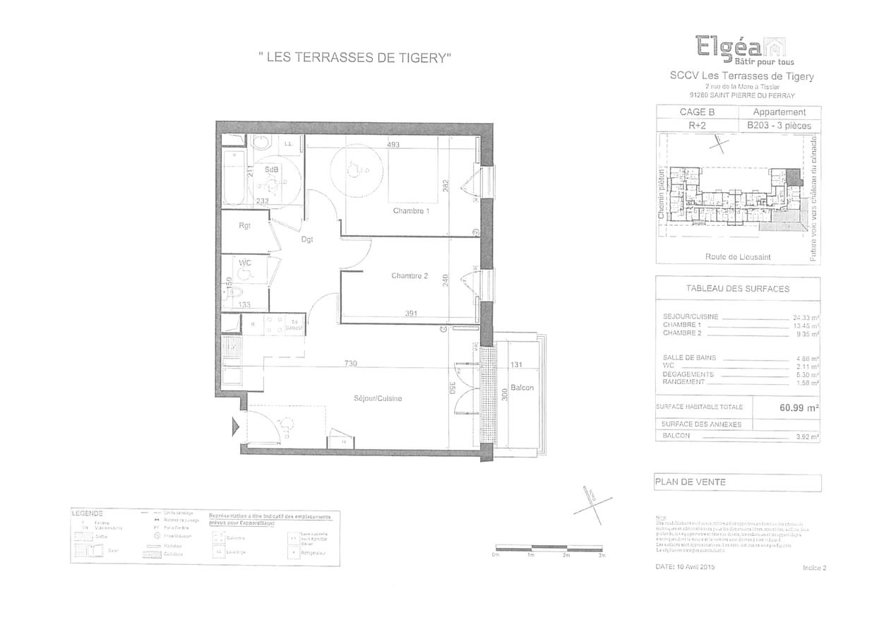 Appartement · Vente Tigery (91250) 3 pièces · 61m²