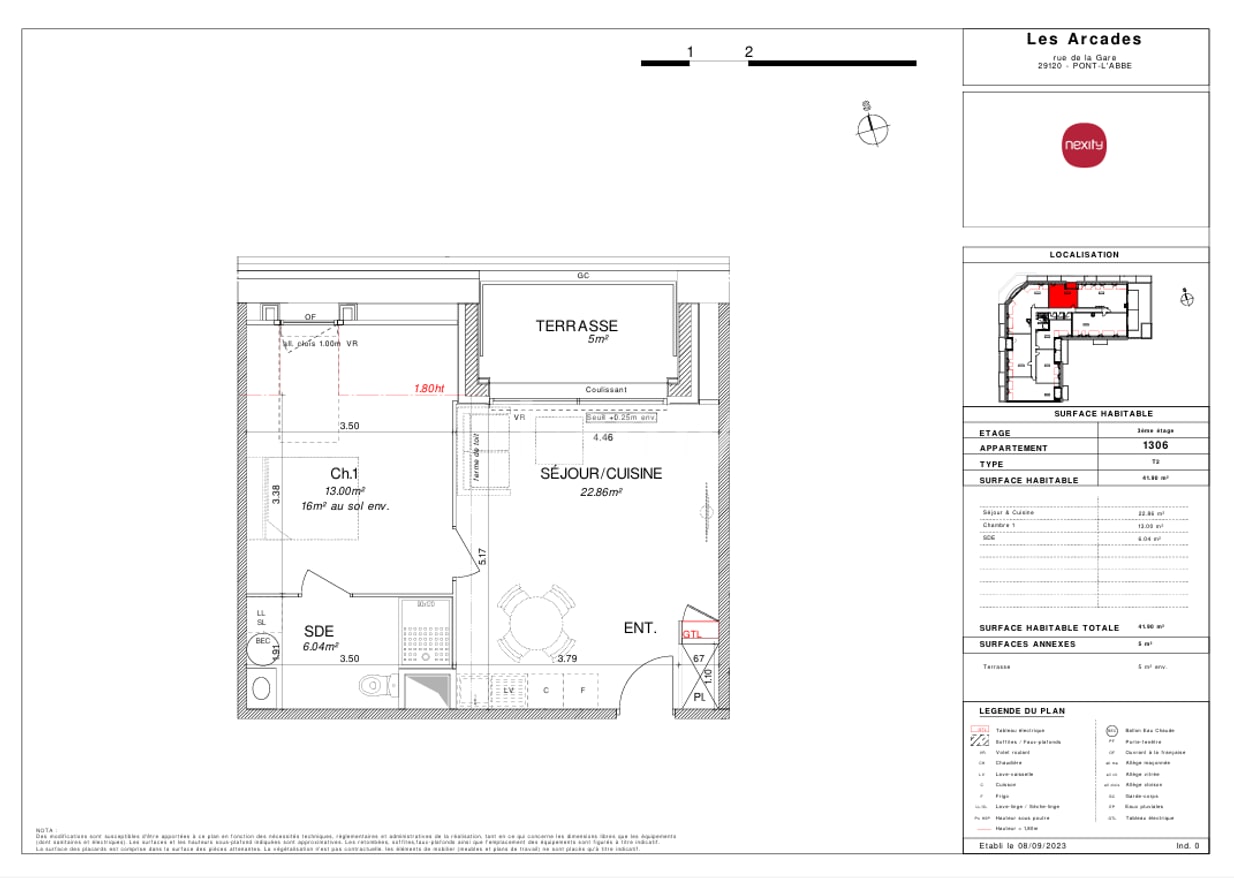 Appartement · Location Pont L Abbe (29120) 2 pièces · 42m²