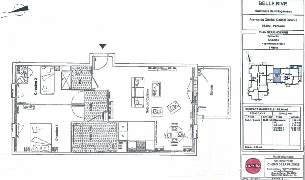 Appartement · Location Pontoise (95300) 3 pièces · 65m²